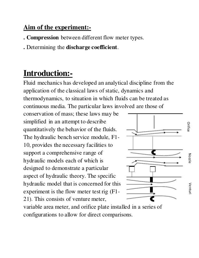 The fluid whose flow rate is to be measured enters the entry section of the venturi meter with a pressure P1. Through the pipe by measuring the pressure difference between. To a diameter of d 16mm.